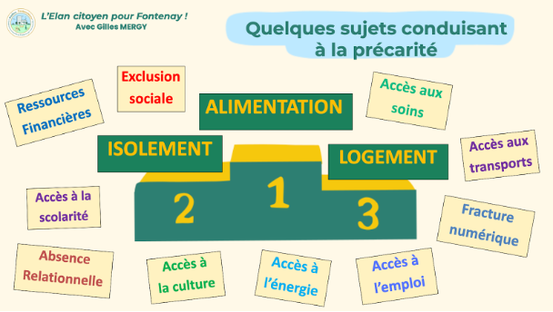 Accueil avant l’école / après l’école adaptés aux horaires des parents isolés, aide pour que les parents isolés puissent se former le soir, identifier toutes les familles monoparentales de Fontenay, protéger les enfants des familles monoparentales plus visés par des personnes mal intentionnées (prévention périscolaire), aide active de la mairie pour alléger le quotidien de ces familles